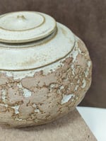 Tellus small lidded jar handmade with a mix of brown stonewares coated with matte cream glaze