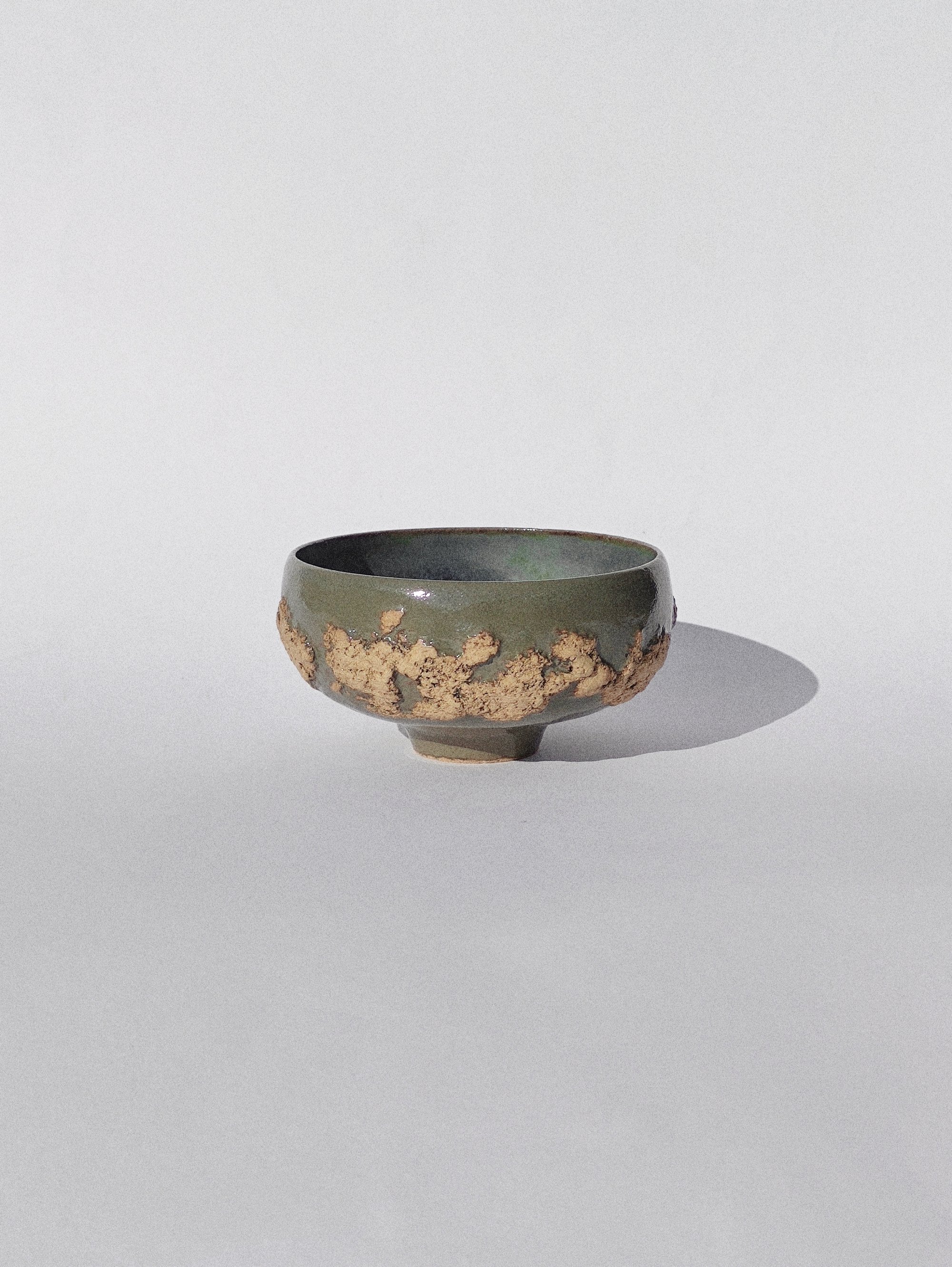 Tellus bowl handmade with stoneware and coated with a green blue shiny glaze