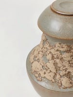 Tellus large lidded jar handmade with stoneware and coated with matte rusty green glaze