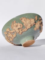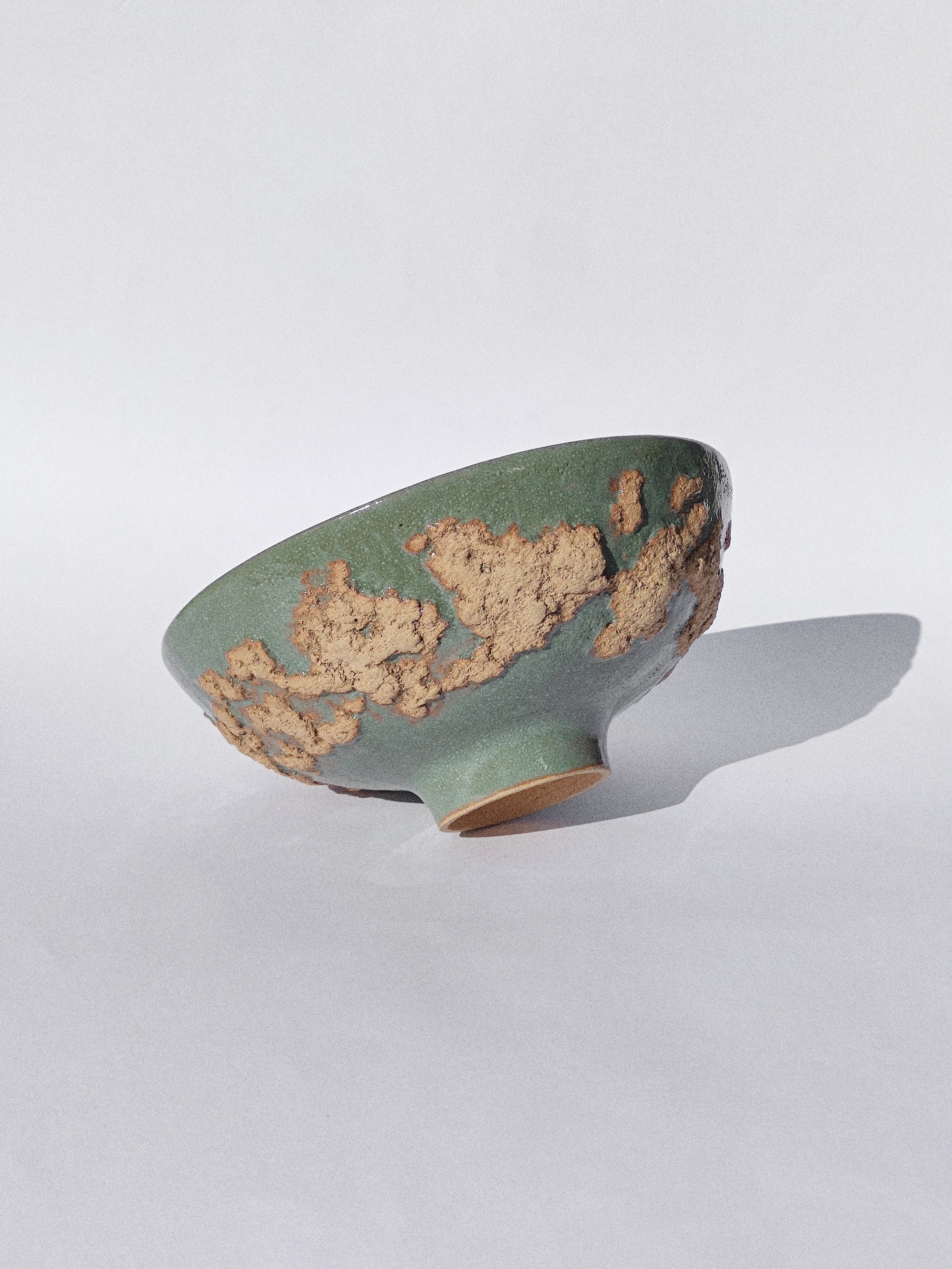 Tellus salad bowl handmade with stoneware and coated with a sea blue glaze