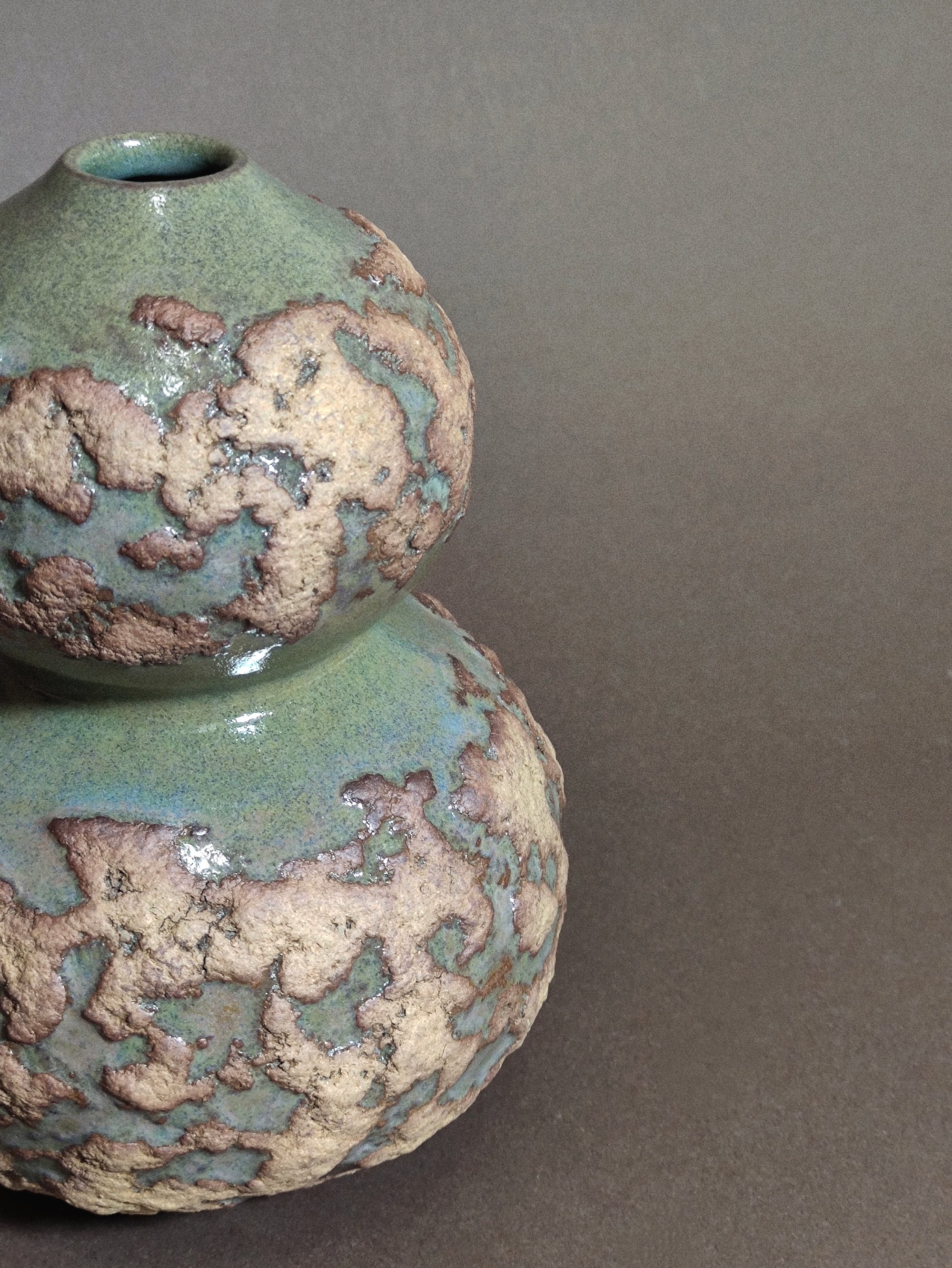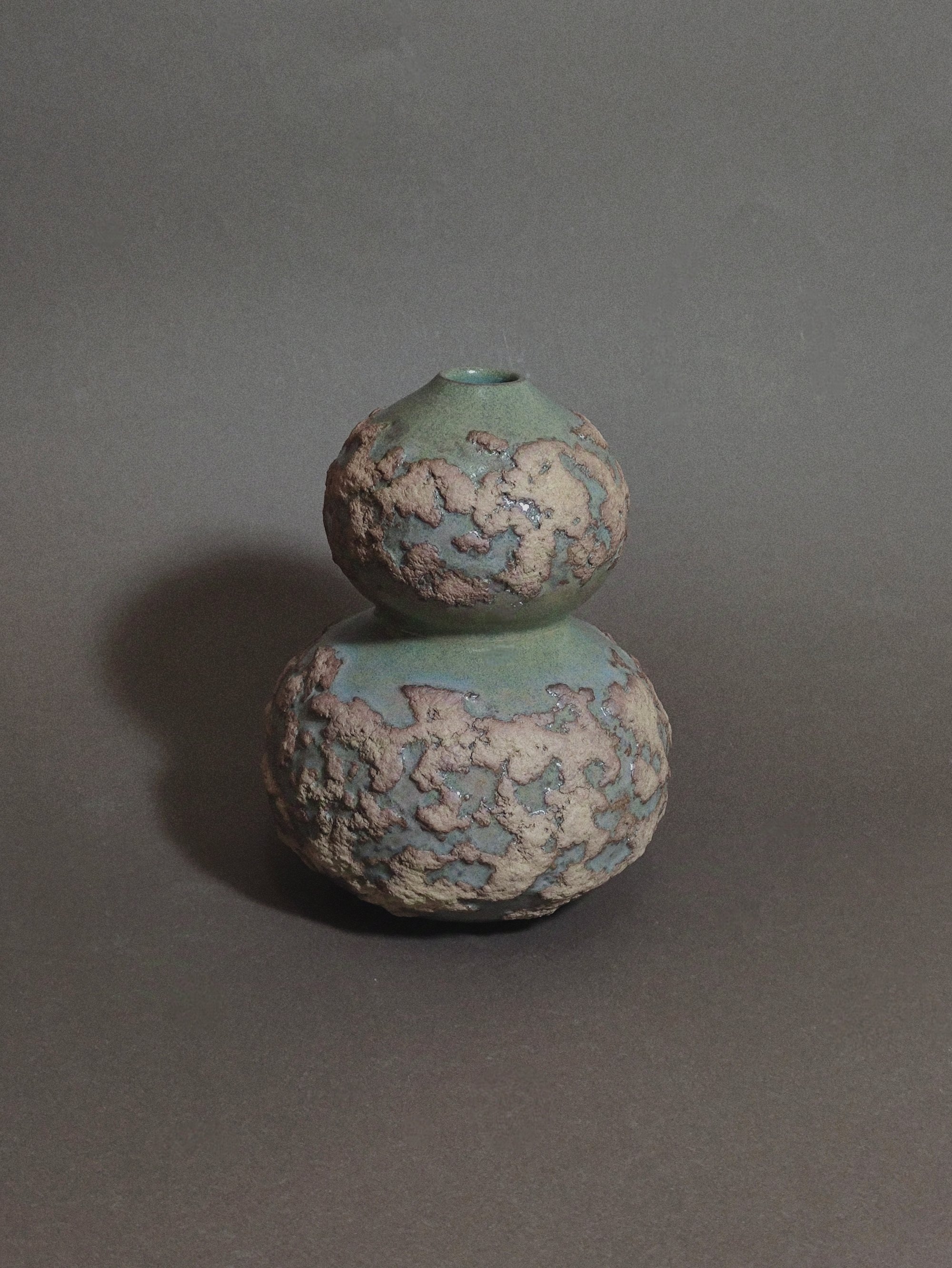 Tellus vase handmade with stoneware and coated with a green-blue shiny glaze