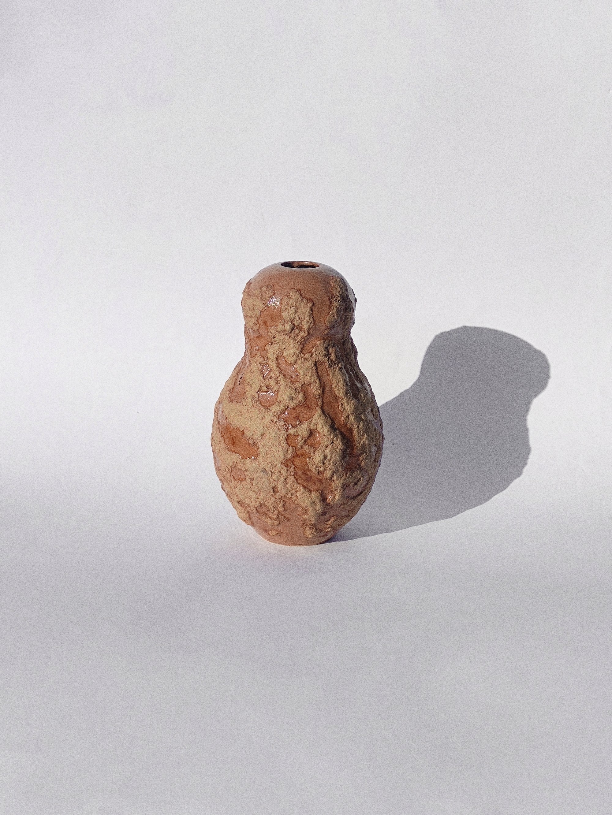 Tellus vase handmade with stoneware and coated with a orange shiny glaze