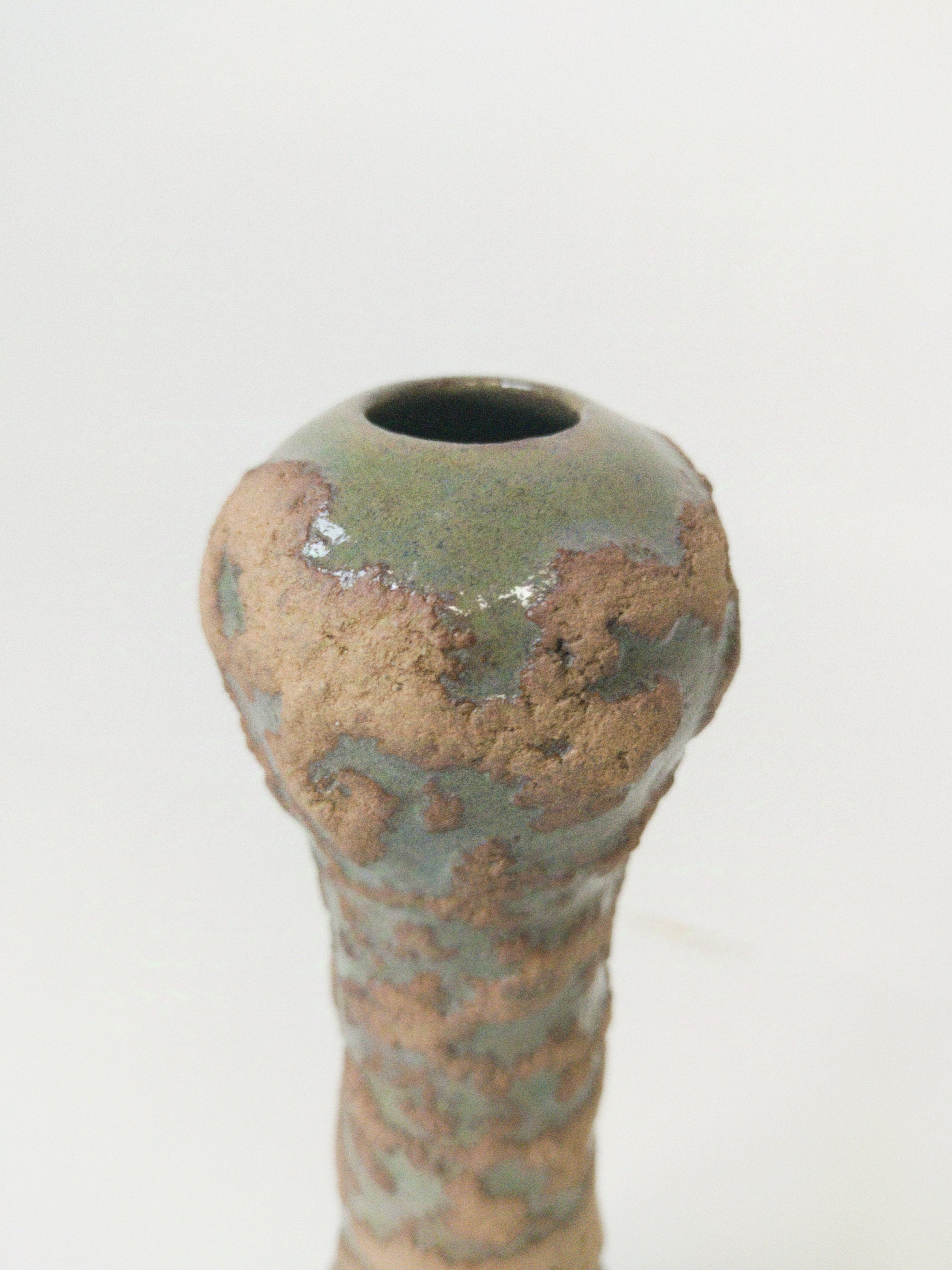 Tellus vase handmade with stoneware and coated with a green-blue shiny glaze